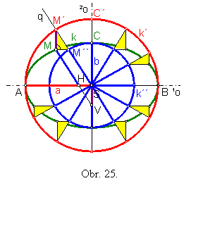 2) elipsou k a kružnicou k´´(S;b) so smerom afinity 1o